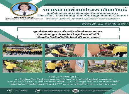 ศูนย์ส่งเสริมการเรียนรู้ระดับอำเภอสะเดา ร่วมกันปลูก ตัดแต่ง บำรุงรักษาต้นไม้ เนื่องในวันรักต้นไม้ประจำปี พ.ศ.2567