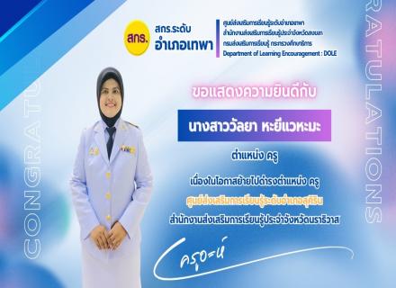 ขอแสดงความยินดีกับ นางสาววัลยา หะยีแวหะมะ