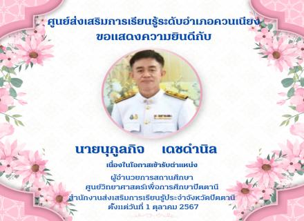 ศูนย์ส่งเสริมการเรียนรู้ระดับอำเภอเทพา ขอแสดงความยินดีกับ นางสาววัลยา หะยีแวหะมะ เนื่องในโอกาสย้ายไปดำรงตำแหน่ง ครู ณ ศูนย์ส่งเสริมการเรียนรู้อำเภอสุคิริน จังหวัดนราธิวาส |