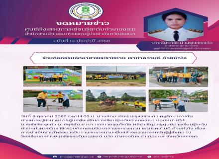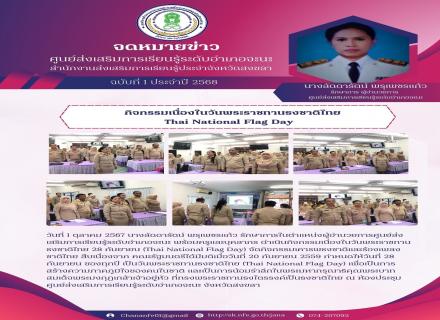 วันที่ 1 ตุลาคม 2567 นางลัดดารัตน์ พรุเพชรแก้ว รักษาการในตำแหน่งผู้อำนวยการศูนย์ส่งเสริมการเรียนรู้ระดับอำเภอจะนะ พร้อมครูและบุคลากร ดำเนินกิจกรรมเนื่องในวันพระราชทานธงชาติไทย 28 กันยายน (Thai National Flag Day) จัดกิจกรรมเคารพธงชาติและร้องเพลงชาติไทย สืบ |