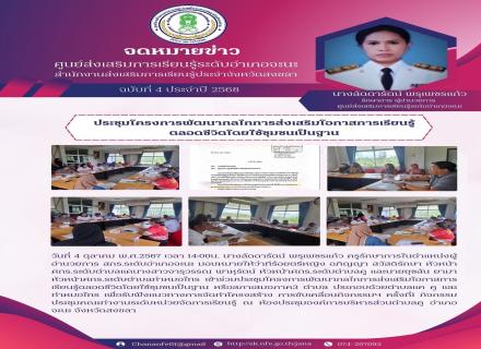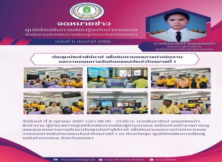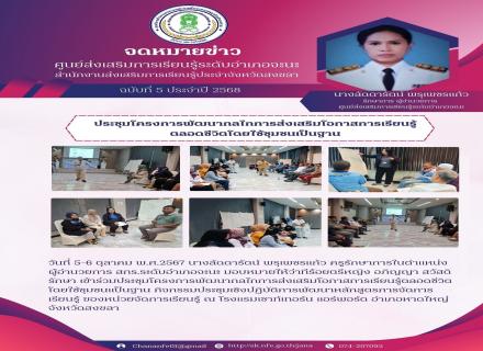 วันที่ 9 ตุลาคม 2567 นางลัดดารัตน์ พรุเพชรแก้ว ครู รักษาการในตำแหน่งผู้อำนวยการ สกร.ระดับอำเภอจะนะ มอบหมายให้บุคลากร ครู ศกร. ระดับตำบลตลิ่งชัน เข้าร่วมประชุมสภาสันติสุข ประจำเดือนตุลาคม 2567 ณ ศูนย์ตาดีกาบ้านนนท์ หมู่ที่ 5 ต.ตลิ่งชัน อ.จะนะ จ.สงขลา โดยมี |