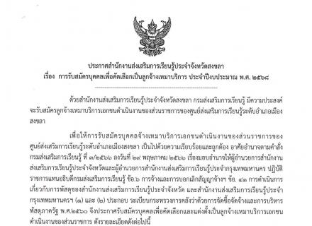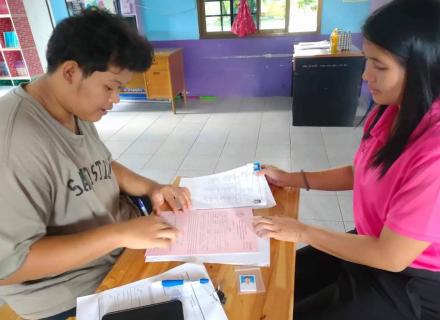 วันที่ 9 ตุลาคม พ.ศ. 2567 นางสาวยุพเรศ สุวรรณะ ครู คศ.2 รักษาการในตำแหน่ง ผู้อำนวยการศูนย์ส่งเสริมการเรียนรู้ระดับอำเภอคลองหอยโข่ง มอบหมายให้ นายศิริชัย บุญช่วย ครู กศน.ตำบล และ นางสาวกชพร รัตนะพันธ์ ครูผู้สอนคนพิการ ลงทะเบียนเรียนนักศึกษาเก่า แล |