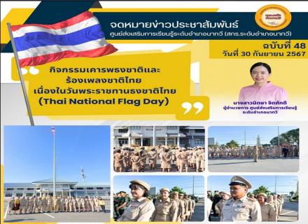 วันที่ ๓๐ กันยายน ๒๕๖๗ เวลา ๐๘.๐๐ น. นางสาวนิตยา จิตภักดี ผู้อำนวยการศูนย์ส่งเสริมการเรียนรู้ระดับอำเภอนาทวี มอบหมายให้บุคลากร สกร.ระดับอำเภอนาทวี เข้าร่วมกิจกรรมเคารพธงชาติและร้องเพลงชาติไทย เนื่องในวันพระราชทานธงชาติไทย (Thai National Flag Day) สืบเนื่อ |