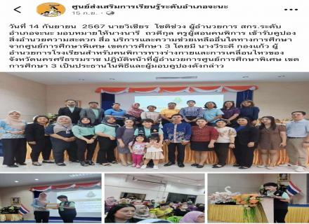 วันที่ 6 กันยายน 2567ได้รับมอบหมายจาก นายวิเชียร โชติช่วง ผอ.สกร ระดับอำเภอจะนะ มอบหมายให้นายจำรัส พรุเพชรแก้ว หัวหน้าศกร.ตำบลป่าชิง นางสาวสุนันทา สอขามิ ครูประจำสถาบันศึกษาปอเนาะ นางสาวร่อฮาณีย์ โส๊ะโหรน ครูผู้สอนคนพิการ และคณะครู จากสกร.ระดับอำเภอจะนะ ใ |