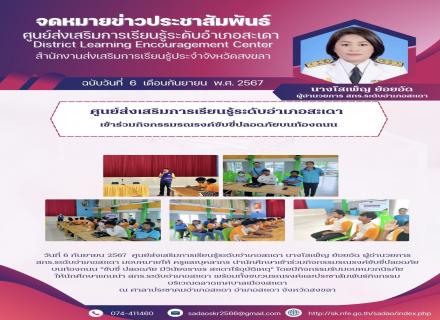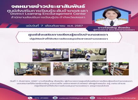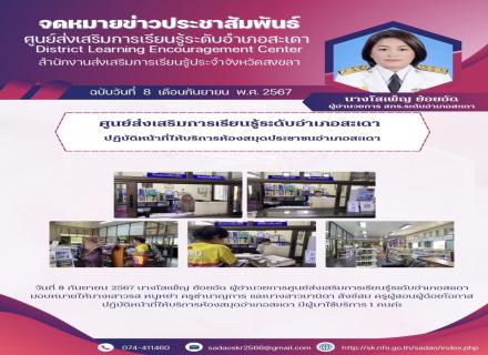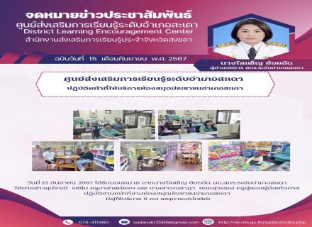 ศูนย์ส่งเสริมการเรียนรู้ระดับอำเภอสะเดา ปฏิบัติหน้าที่ให้บริการห้องสมุดประชาชนอำเภอสะเดา