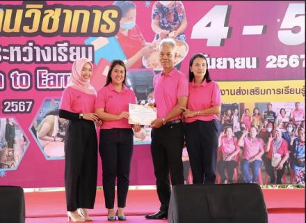 วันที่ 4 กันยายน 2567 ศูนย์ส่งเสริมการเรียนรู้ระดับอำเภอบางกล่ำ นำโดย นางชุติมา พูลเกิด ผู้อำนวยการศูนย์ส่งเสริมการเรียนรู้ระดับอำเภอบางกล่ำ พร้อมด้วยครูและบุคลากร เข้าร่วมมหกรรมเปิดบ้านวิชาการ ส่งเสริมการมีรายได้ระหว่างเรียน จบแล้วมีงานทำ (Learn to Ea
