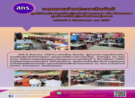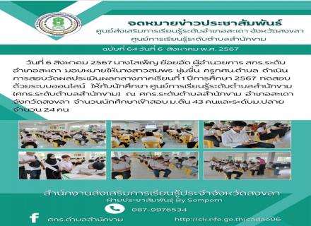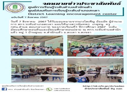 ศูนย์ส่งเสริมการเรียนรู้ระดับอำเภอสะเดา สอบวัดผลประเมินผลกลางภาคเรียนที่ 1 ปีการศึกษา 2567