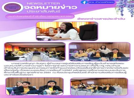 วันที่ 26 กรกฎาคม 2567 นางสาวยุพเรศ สุวรรณะ ครู คศ.2 รักษาการในตำแหน่งผู้อำนวยการศูนย์ส่งเสริมการเรียนรู้ระดับอำเภอคลองหอยโข่ง มอบเกียรติบัตรให้คณะครู วิทยากร และนักศึกษาที่เข้าร่วมโครงการส่งเสริมกิจกรรมเด็กและเยาวชน ปีงบประมาณ พ.ศ. 2567 ระหว่างวันที่ |