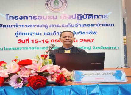 วันที่ 17 กรกฎาคม 2567 นางสาวยุพเรศ สุวรรณะ ครู คศ.2 รักษาการในตำแหน่งผู้อำนวยการศูนย์ส่งเสริมการเรียนรู้ระดับอำเภอคลองหอยโข่ง มอบหมายให้ นายศิริชัย บุญช่วย ตำแหน่ง ครู ครูกศน.ตำบล เป็นวิทยากรจัดกิจกรรมให้ความรู้เรื่อง เทคนิคการถ่ายภาพเบื้องต |