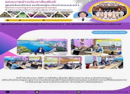 ศูนย์ส่งเสริมการเรียนรู้ระดับอำเภอสะเดา ให้การต้อนรับรองผู้อำนวยการสำนักงาน ส่งเสริมการเรียนรู้ประจำจังหวัดสงขลา
