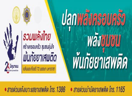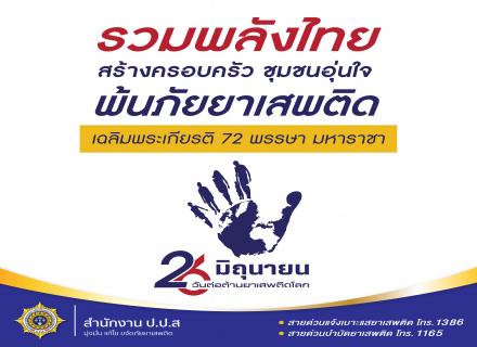 26 มิถุนายน วันต่อต้านยาเสพติดโลกรวมพลังไทย สร้างครอบครัว ชุมชนอุ่นใจ พ้นภัยยาเสพติด |