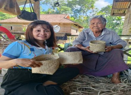 ลงพื้นที่ เยี่ยมบ้าน นางละม้าย จันทร์เพชร เกี่ยวกับภูมิปัญญา ผลิตภัณฑ์จักสานจากใบลาน