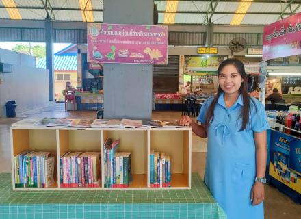 บรรณารักษ์จัดกิจกรรมห้องสมุดเคลื่อนที่สำหรับชาวตลาด โดยการนำหนังสือ สื่อสิ่งพิมพ์จัดมุมหนังสือและนำสื่อส่งเสริมการอ่านออนไลน์ QR Code มาเผยแพร่