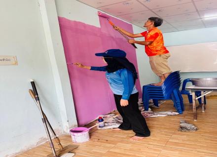 นางสาวพัชรี ไชยโรจน์ ผู้อำนวยการ สกร.ระดับอำเภอเทพา มอบหมายนางสาวนูรีย๊ะ ยีหรัน ครูอาสา ฯ ประจำ ศรช. นำองค์กรนักศึกษาและผู้่เรียน ศกร.ระดับตำบลเทพา ร่วมกันพัฒนาปรับภูมิทัศน์แหล่งเรียนรู้ศูนย์การเรียนรู้ระดับตำบลเทพา เพื่อพัฒนาให้เป็นห้องเรียนประจำตำบลที