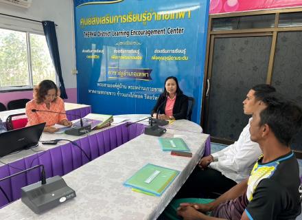 นางสาวพัชรี ไชยโรจน์ ผู้อำนวยการศูนย์ส่งเสริมการเรียนรู้ระดับอำเภอเทพา พร้อมด้วย นางสาวปิยะรัตน์ จันทร์เพชร ครู (หัวหน้างานแผนฯ) และนางศุภลักษณ์ เจริญดี ครู (หัวหน้างานพัฒนาทักษะภาษาเพื่อสื่อสาร จชต.) เข้าร่วมประชุมพิจารณาหลักเกณฑ์ และจัดทำเครื่องมือสำห