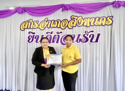 ผู้อำนวยการศูนย์ส่งเสริมการเรียนรู้ระดับอำเภอสิงหนคร มอบเกียรติบัตรให้แก่ ห้องสมุดประชาชน \"เฉลิมราชกุมารี\" อำเภอสิงหนคร
