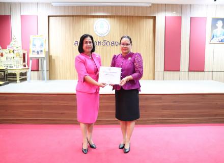 นางสาวพัชรี ไชยโรจน์ ผู้อำนวยการศูนย์ส่งเสริมการเรียนรู้ระดับอำเภอเทพา พร้อมด้วยผู้บริหารสถานศึกษา สังกัดสำนักงาน สกร.ประจำจังหวัดสงขลา รับมอบ #แผ่นธรรมนาวา\"วัง\" จาก นางเกษร ธานีรัตน์ ผู้อำนวยการสำนักงานส่งเสริมการเรียนรู้ประจำจังหวัดสงขลา ตา |