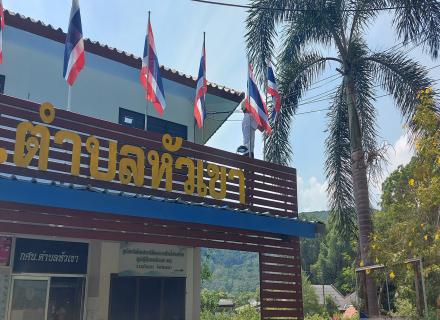 ศกร.ระดับตำบลหัวเขาได้พัฒนาล้างห้องน้ำ ตัดแต่งต้นไม้และเปลี่ยนธงชาติโดย นศ.ศกร.ระดับตำบลหัวเขา