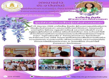 วันที่ 27 มิถุนายน 2568 นางชุติมา พูลเกิด ผู้อำนวยการศูนย์ส่งเสริมการเรียนรู้ระดับอำเภอบางกล่ำ มอบหมายให้ นางสาวสิริพร ทวะกาญจน์ ครู ชำนาญการและครู ศกร.ระดับตำบลท่าช้าง นำนักศึกษา เข้าร่วมกิจกรรมหล่อเทียนพรรษาประจำปี 2568 ณ วัดยูงทอง ตำบลท่าช้างอำเภอบาง |