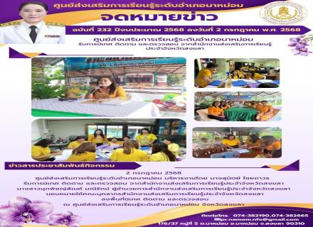 วันที่ 3 กรกฏาคม 2568 ดร.ไพโรจน์ คเชนทองสุวรรณ์ ผู้อำนวยการศูนย์ส่งเสริมการเรียนรู้ระดับอำเภอหาดใหญ่ นิเทศติดตามการจัดการเรียนรู้การศึกษาขั้นพื้นฐาน ครูผู้สอนคนพิการ ซึ่งดำเนินการจัดการเรียนรู้โดย นายวิทัญญู นาคเกิด ครูผู้สอนคนการ พร้อมทั้งได้พบปะพูดคุยกั |