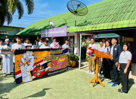 วันที่ 24 มิถุนายน 2568 นายณัฐภูมินทร์ สังข์พงศ์ ผู้อำนวยการ สกร.ระดับอำเภอรัตภูมิ พร้อมด้วยคณะครู นักศึกษา สกร.ระดับอำเภอรัตภูมิ จัดกิจกรรมเดินรณรงค์รวมพลังไทยหยุดภัยยาเสพติด 26 มิถุนายน วันต่อต้านยาเสพติดโลก และกล่าวคำปฏิญาณตน ณ ศูนย์ส่งเสริมการเรียน |