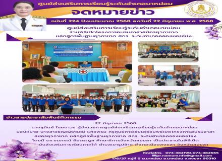 วันที่ 22 มิถุนายน 2568 นายณัฐภูมินทร์ สังข์พงศ์ ผู้อำนวยการ สกร.ระดับอำเภอรัตภูมิ มอบหมายให้ นางวิชซุตา คงมัยลิก ครูศูนย์การเรียนรู้ จัดโครงการศูนย์ฝึกอาชีพชุมชนระยะสั้น หลักสูตรการทำน้ำผักแควเพื่อสุขภาพ ณ อาคารอเนกประสงค์ หมู่ 14 ตำบลคูหาใต้ อำเภอรัตภ |