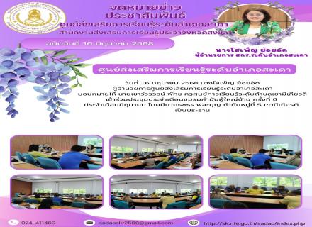 ศูนย์ส่งเสริมการเรียนรู้ระดับอำเภอสะเดา เข้าร่วมประชุมประจำเดือนชมรมกำนันผู้ใหญ่บ้าน ครั้งที่ 6 ประจำเดือนมิถุนายน