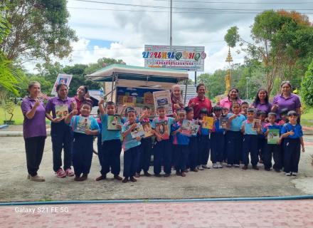 บรรณารักษ์ ห้องสมุดประชาชนอำเภอบางกล่ำ พร้อมด้วยคณะครู ศกร.ระดับตำบลแม่ทอม จัดกิจกรรมการเรียนรู้ตลอดชีวิต ภายใต้โครงการส่งเสริมการอ่าน ห้องสมุดเคลื่อนที่ “อ่านได้ทุกที่ เข้าถึงได้ทุกคน” กิจกรรมรถมินิโมบาย ห้องสมุดเคลื่อนที่สู่ชุมชน