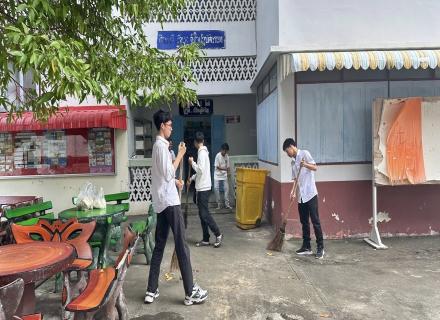 นักศึกษาศูนย์การเรียนชุมชนวัดหัวป้อมใน กลุ่มนางสาวกานดา นวลละออง ครูศูนย์การเรียนรู้ กลุ่มนางฐิติรัตน์ เกตุแก้ว ครูศูนย์การเรียนรู้ และกลุ่มนายพงศธร ทองสันตติ์ ครูศูนย์การเรียนรู้ ร่วมกันพัฒนาวัดหัวป้อมใน ตำบลบ่อยาง อำเภอเมืองสงขลา จังหวัดสงขลา