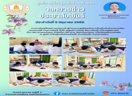 วันที่ 5 มิถุนายน 2568 นางสาวธัญญ์ลักษณ์ ขจรสกุลวงศ์ ผู้อำนวยการศูนย์ส่งเสริมการเรียนรู้ระดับอำเภอควนเนียง มอบหมายให้ นางสาวปรัศณี รักนิ่ม ครูศูนย์การเรียนรู้